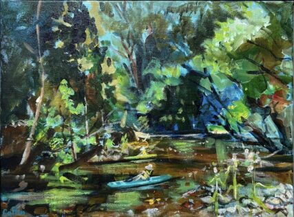 Catherine is a painter known for her vibrant use of colour and her ability to evoke a strong sense of place. She is particularly drawn to the immediacy of en plein air painting, where she captures the shifting light and fleeting qualities of the landscape in the moment. Her larger studio works often expand on these experiences, telling stories inspired by the scenes she has encountered. Working in both acrylic and oil, Catherine brings energy, atmosphere, and narrative depth to her practice.