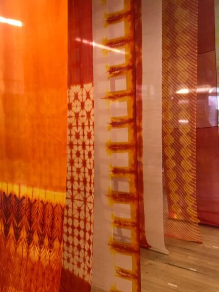 Jeans’ passion is fabric, its history and origins, the many ways it can be patterned, coloured and decorated to create garments or works of art. She uses the ancient resist dying techniques of Shibori and clamped blocks to pattern glorious silk fabrics. While this form of dyeing is very labour intensive it allows her to be specific in placement of the pattern on the garment or piece of art making it unique and original.
