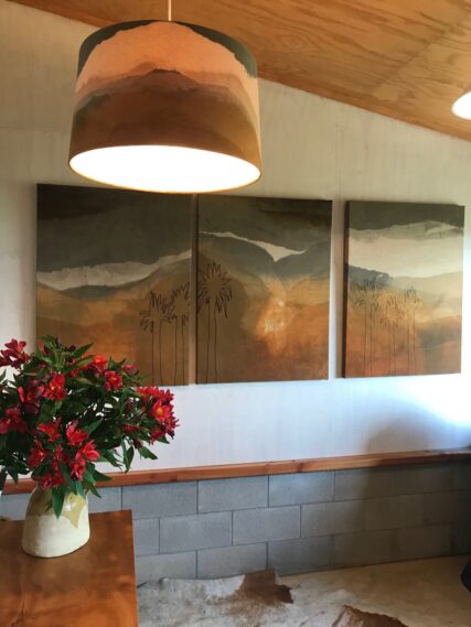 She is happy to have visitors to her studio to either discuss the process, do a workshop, try on a garment or purchase a gift, phone or text first to arrange a time.