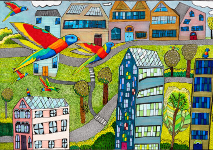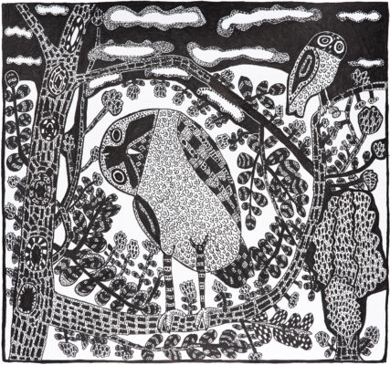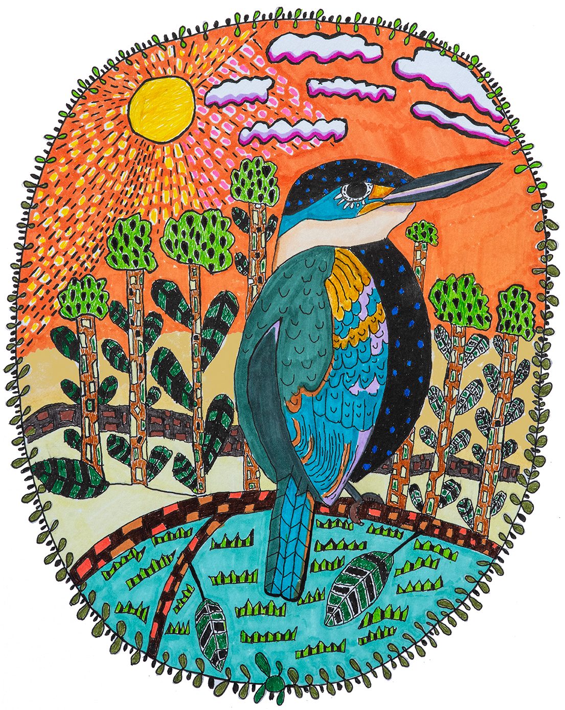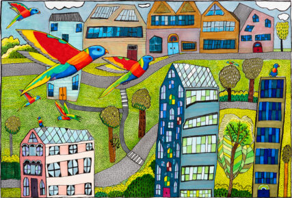Julian has his own unique view of the world which can be seen in his drawings involving intense pattern-making with fine-tipped pens. People often find his naïve drawings of simple subjects very moving.