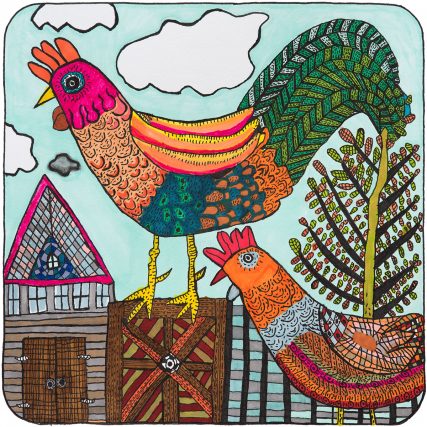 His original drawings are very small. They are reproduced and available as larger sized prints which are extremely lightfast. He paints over some of these with water colour while the rest are available in small editions.