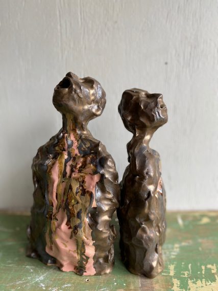 “Working with clay feels right for me as there is a lovely relationship between function, form, science and expression. Being practical, and the beautiful stuff…. carving, making… How magic, to capture a moment, a feeling, literally with my bare hands.”
