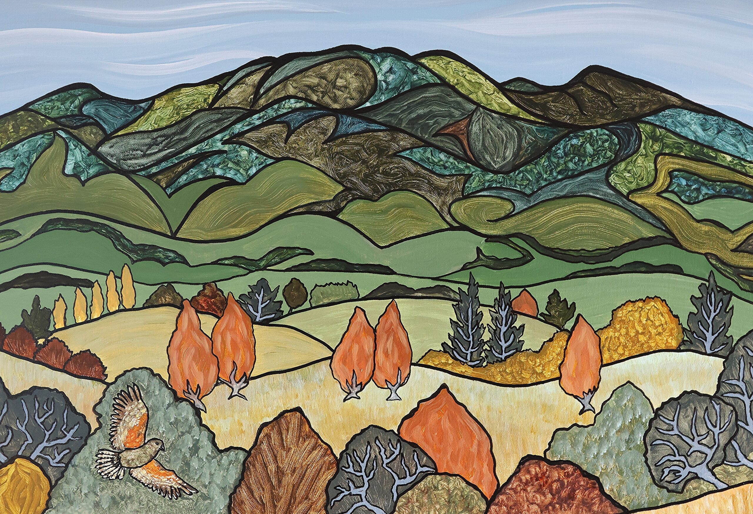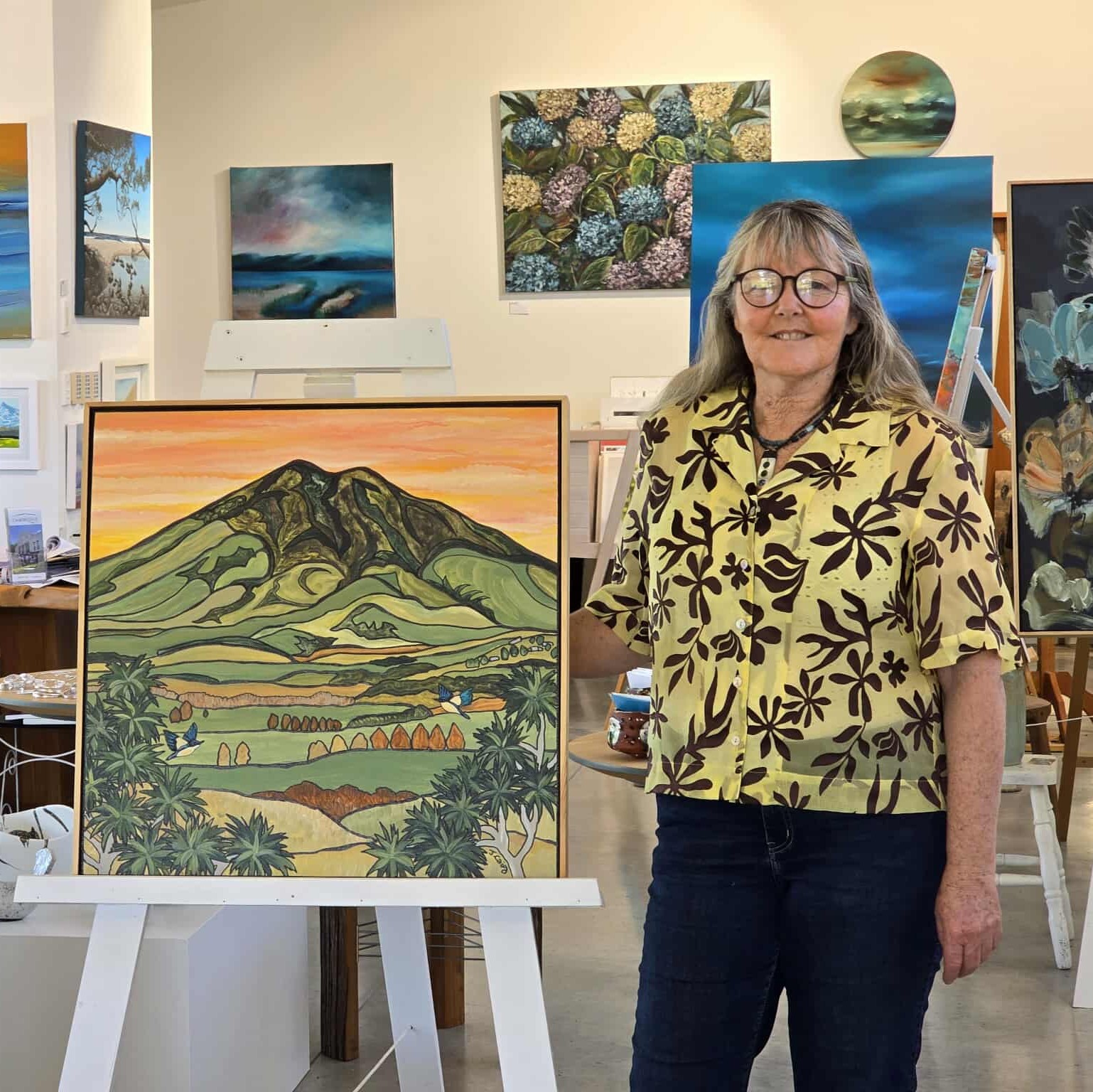 Miranda has rarely done solo shows as she is not really one for the limelight. Mostly she has been a stock artist, just putting her work on the courier and sending it off to galleries and buyers. Over 2000 originals have gone out and are all around the world. Her work has featured on the cover of Contemporary New Zealand Art Calendars.