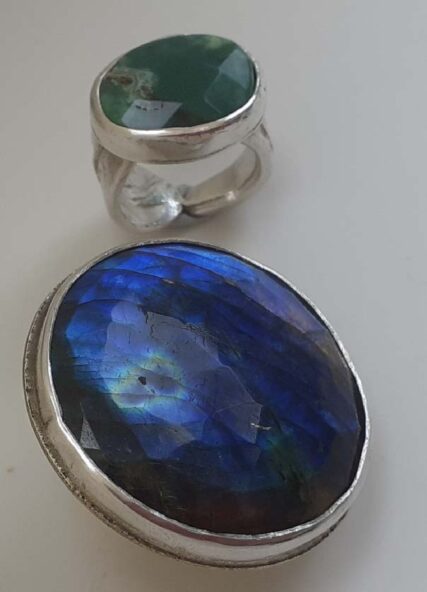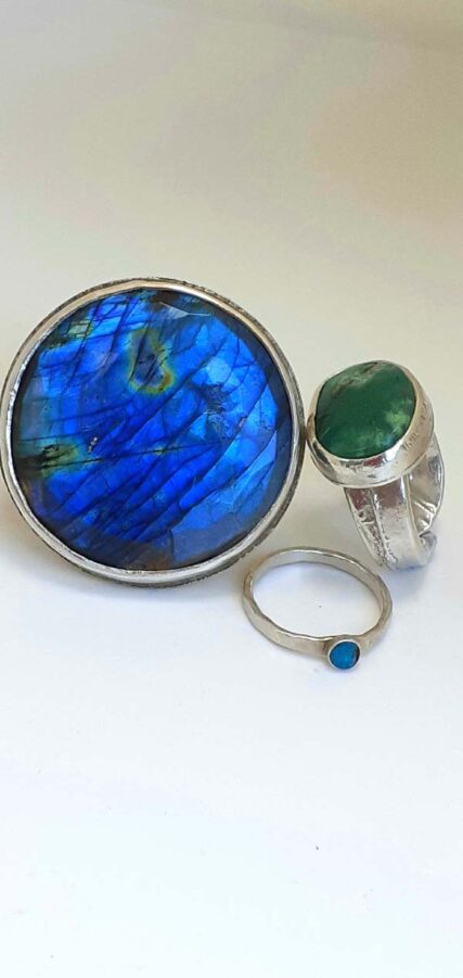 Sarah Steed is an artist inspired by the ocean-deep teals, azure blues, aqua’s, silvery schiller and turquoise, colours that feel the depths of the ocean. She graduated from The Norwich School of Art and Design in BA (Hons) Fine Art Sculpture, but her love for stone, shape and metals soon turned her attention to jewellery design.