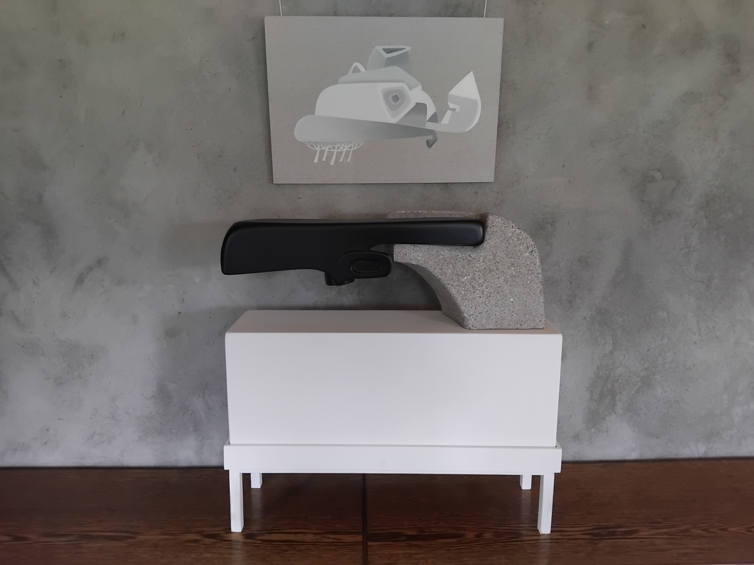 Stuart’s current practice explores the nature of objects through sculpture and uses conceptual abstraction in painting to respond to the environment. He works with a variety of materials; his outdoor sculptures are specifically constructed from concrete and stainless steel.