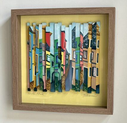Tessa is a painter whose practice explores composition through the integration of mixed media and the dynamic interplay of form and structure. Central to her work is the distinctive interaction of sliced panels, a process she has developed into her signature “paint, slice and re-create” technique. Tessa begins by painting full panels, which are then carefully sliced into segments and reassembled, creating compositions that reveal new perspectives and depth.