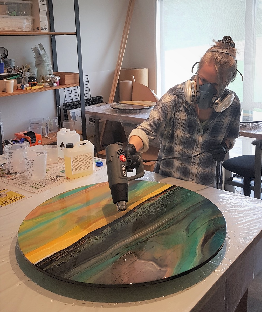 Toni Kingstone is a contemporary New Zealand painter whose work explores atmosphere, light and landscape through a range of techniques and materials including acrylic, resin and metallic pigments. Her paintings often capture moments of quiet transition – the shifting light of dawn or dusk, distant horizons, or the filtered glow of sunlight through the landscape.