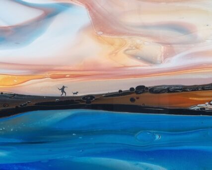 Working intuitively, Toni begins with a loose concept before allowing the natural movement of paint to guide the composition. Layers are built and refined using fluid mediums, brushwork and palette knife, creating works that move between abstraction and landscape, where recognisable elements emerge from expressive colour and texture.